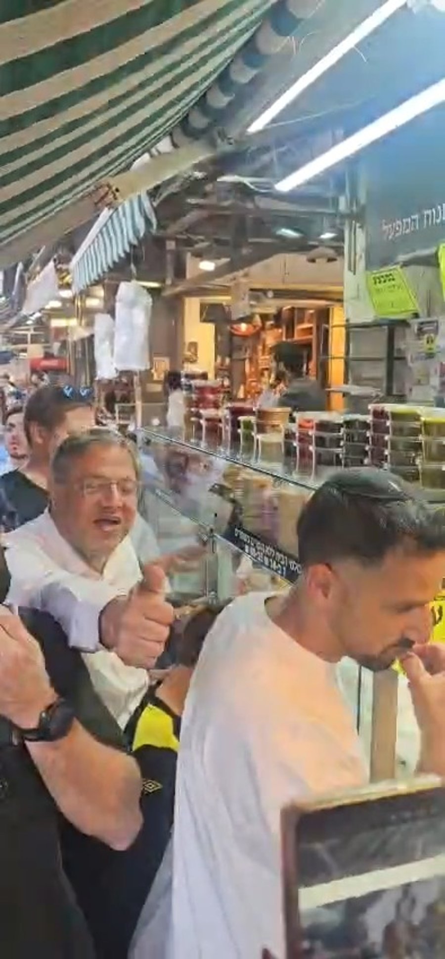 השר לביטחון לאומי איתמר בן גביר מתקבל באהדה גדולה, במהלך קניות לשבת בשוק 'מחנה יהודה' בירושלים.