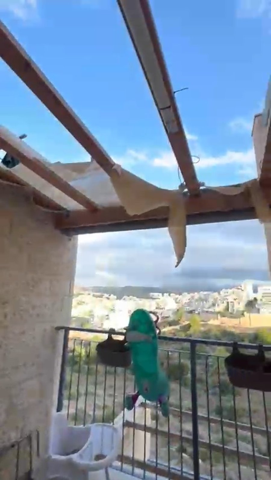 מרפסת ביתו של המוזיקאי דוידי נחשון נהרסה השבוע בעקבות מזג האוויר הסוער, תמונת הרבי מחב"ד נותרה על מקומה ללא פגע.