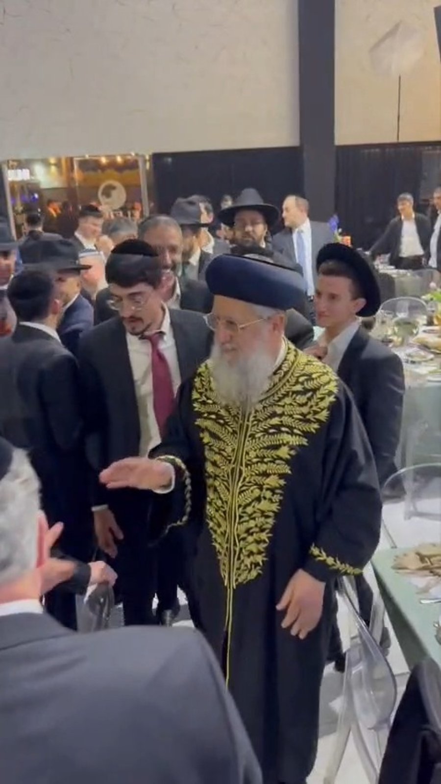 כאילו לא היתה מתיחות: הראשון לציון הגאון רבי דוד יוסף מתקבל בכבוד בשמחת האירוסין לבתו של מנכ"ל משרד הדתות יהודה אבידן, כשהוא מלווה באח הכלה עו"ד דניאל אבידן ראש מטה מנכ"ל ביטוח לאומי.