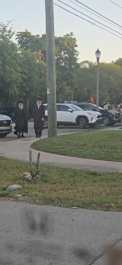 האדמו"ר מפאפא נצפה ברחובות פלורידה שם שוהה למנוחה, כשהוא מלווה בגבאי אחד בדרכו לתפילה.