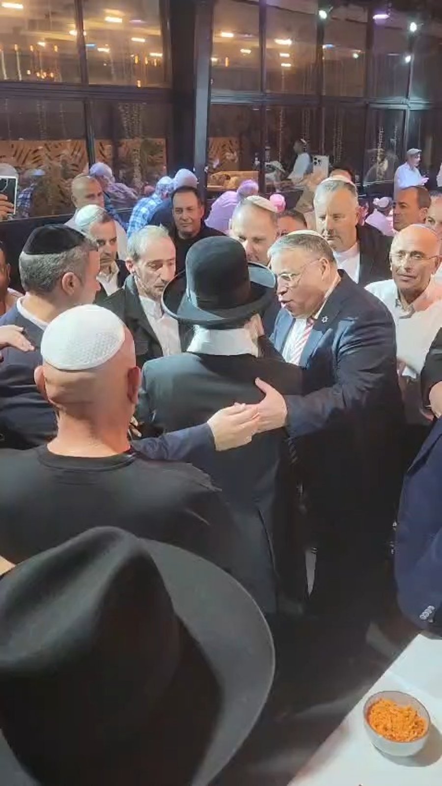 שר החינוך יואב קיש מתברך מהמקובל הרב נתנאל שריקי, לאחר אירוע פרטי.
