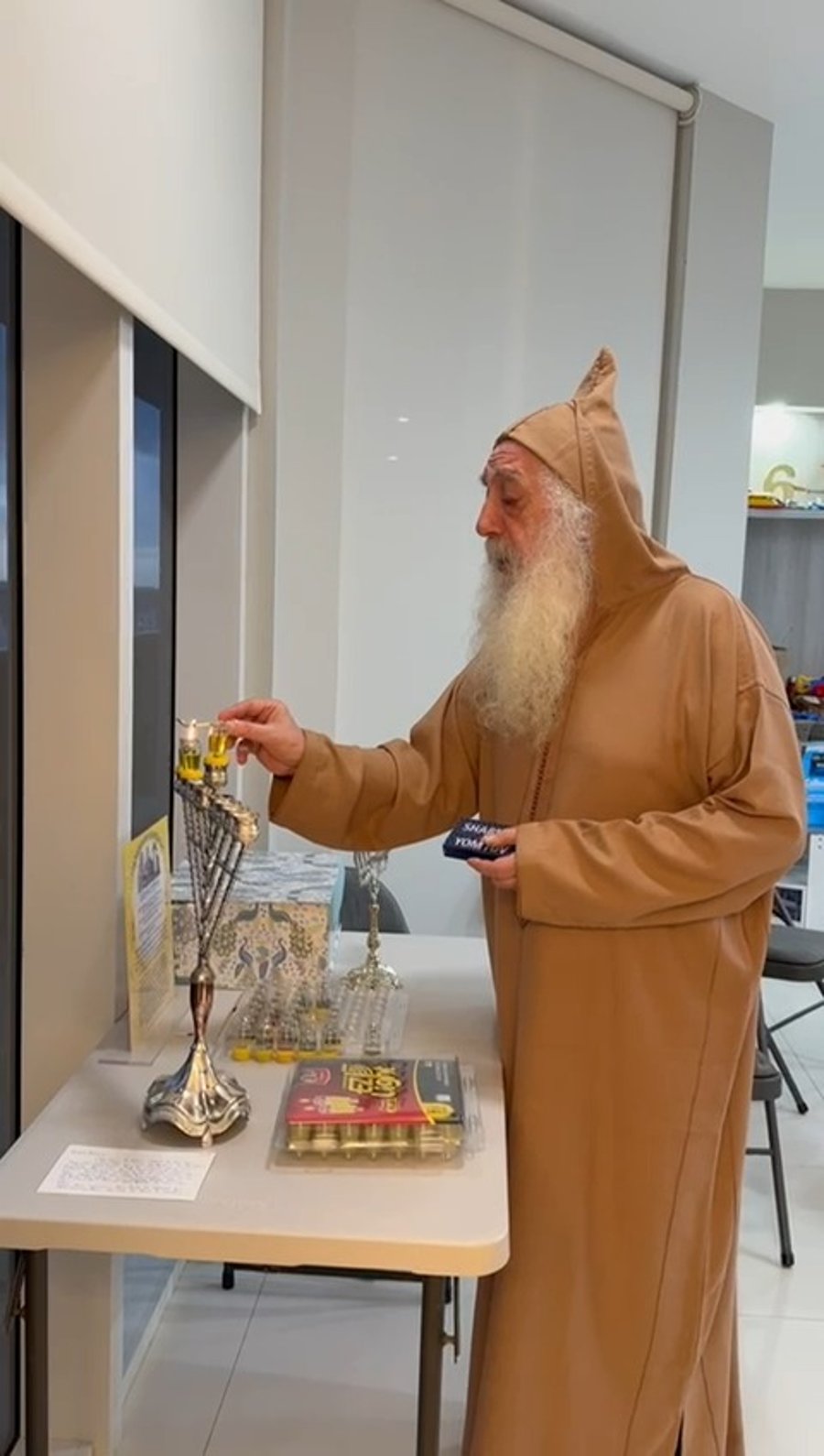 האדמו"ר הרב דוד חנניה פינטו שטס למסע חיזוק בקהילות היהודיות בדרום אמריקה, בהדלקת נרות חנוכה כמנהג יהודי מרוקו בלבוש המסורתי.