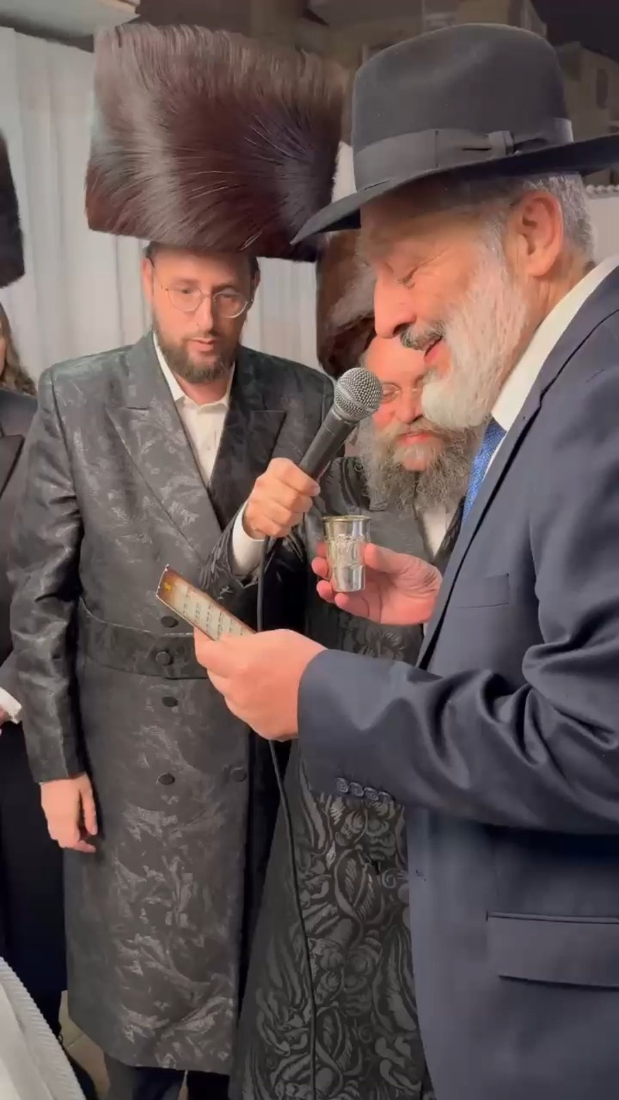 יו"ר ש"ס ח"כ אריה דרעי בירך בהבהרה ספרדית, בחופת בתו של ישראל כהן - יוטאלה עם הבחור אליעזר משה קליין, באירוע שנערך באולמי 'גני הדקל' בבני ברק.