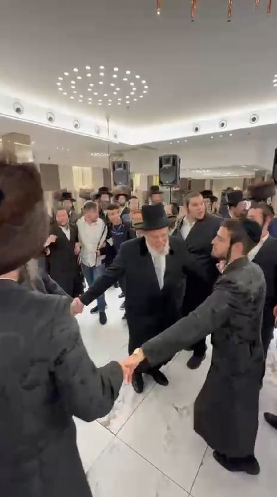 ברחבת הריקודים ראינו את הרב הראשי הגאון הרב קלמן בר, בריקוד של שמחה עם אבי הכלה ישראל כהן.