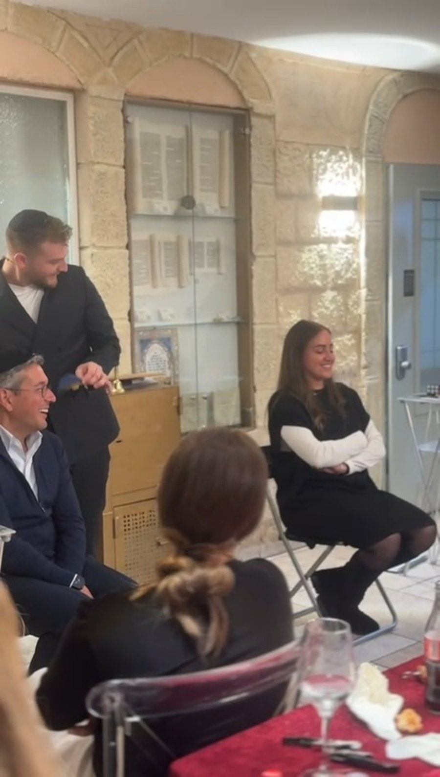 טופז לוק, יועצו של ראש הממשלה בנימין נתניהו, בברכה והתייעצות עם המקובל הרב יעקב ישראל איפרגן - 'הרנטגן', במהלך אירוע פרטי באחוזתו של איש העסקים מאור בן שושן בהרצליה: "שתמצא זיווג הגון בקרוב".
