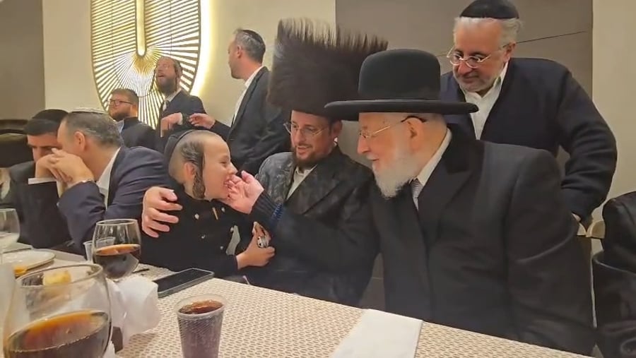 את הרב הראשי הגאון הרב ישראל מאיר לאו ראינו במהלך החתונה מקדיש דקות ארוכות לשיחה חביבה ומאירת פנים עם ארי כהן, אח הכלה, ומברכו בחמימות.
