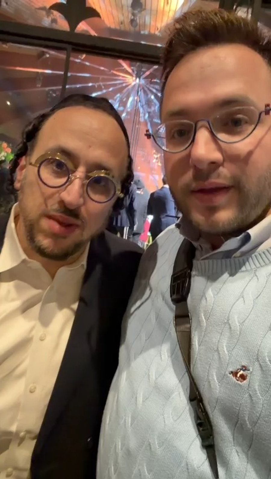 לאחר מכן ראינו את הנגיד שמוליק הלפרין וכוכב הרשת שוקי סלומון, ב'לחיים' עם הגאון הרב בן ציון אזרחי ראש ישיבת 'עטרת ישראל'.