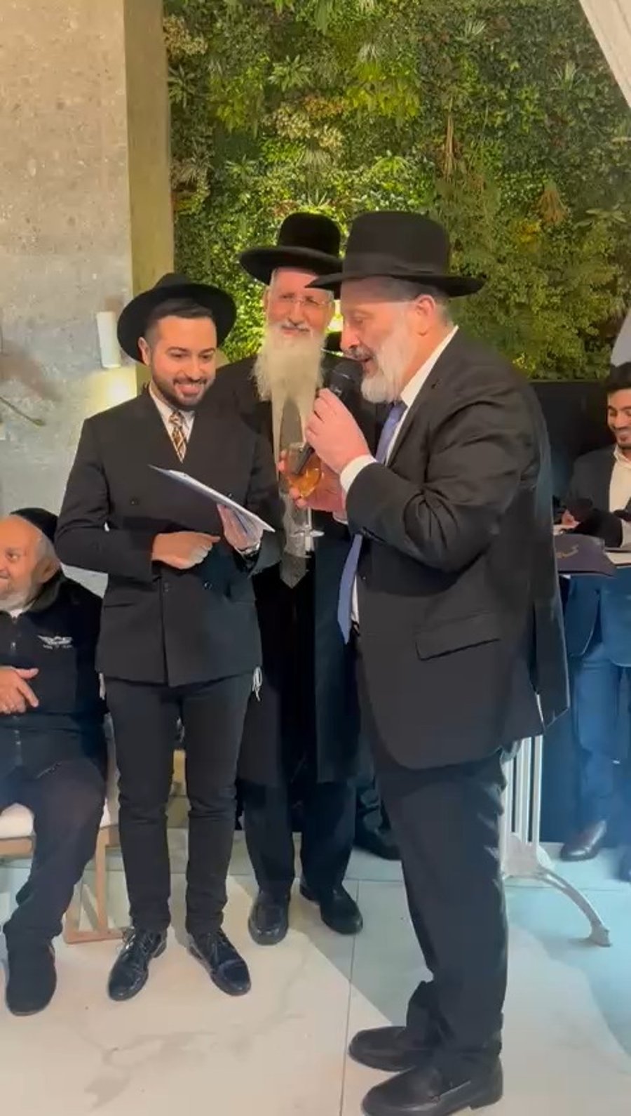 מאיר רובינשטיין ראש העיר ביתר עילית וסגנו גדליה אייזנשטיין, שימי בלוי ושמואל קרמרסקי מלשכת ח"כ מאיר פרוש, ישראל פרנקל מלשכת צחי ברים סגן ראש העיר ירושלים, האחים ישראל רוזנבוים מהקרן למורשת הכותל והיועץ האסטרטגי יוסי רוזנבוים, בשמחת ה'וואכט נאכט' לבנו של איציק קליין מנהל המגזר החרדי ב'מכבי' במחוז ירושלים והשפלה.
