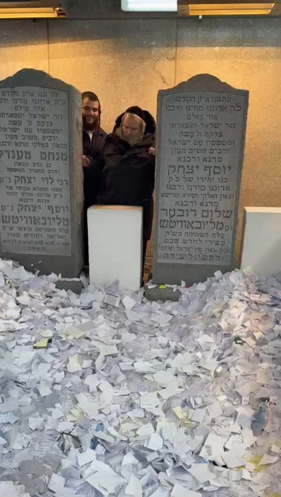 הגאון הרב שלום ארוש ראש מוסדות 'חוט של חסד' בתפילה בציון הרבי מחב"ד בניו יורק.