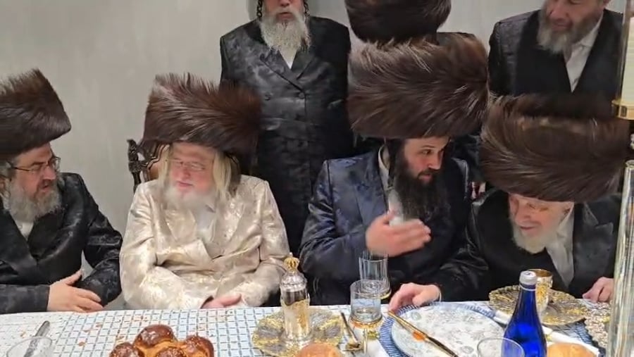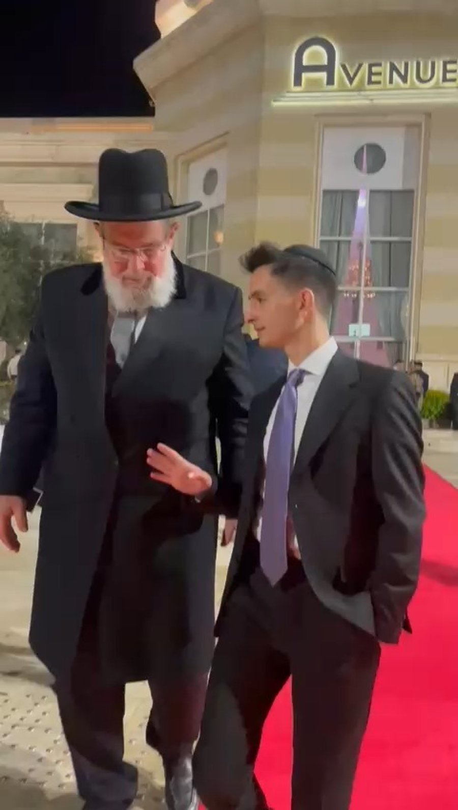 הגה"צ רבי יעקב מרדכי הגר, אב"ד ויז'ניץ אלעד נצפה בשמחת נישואי בן העסקן הרב אברהם פלדמן.