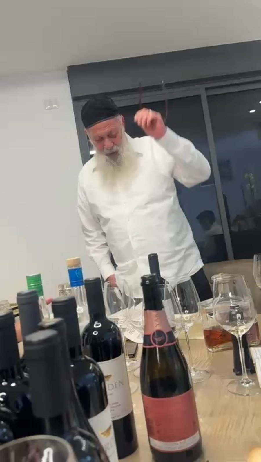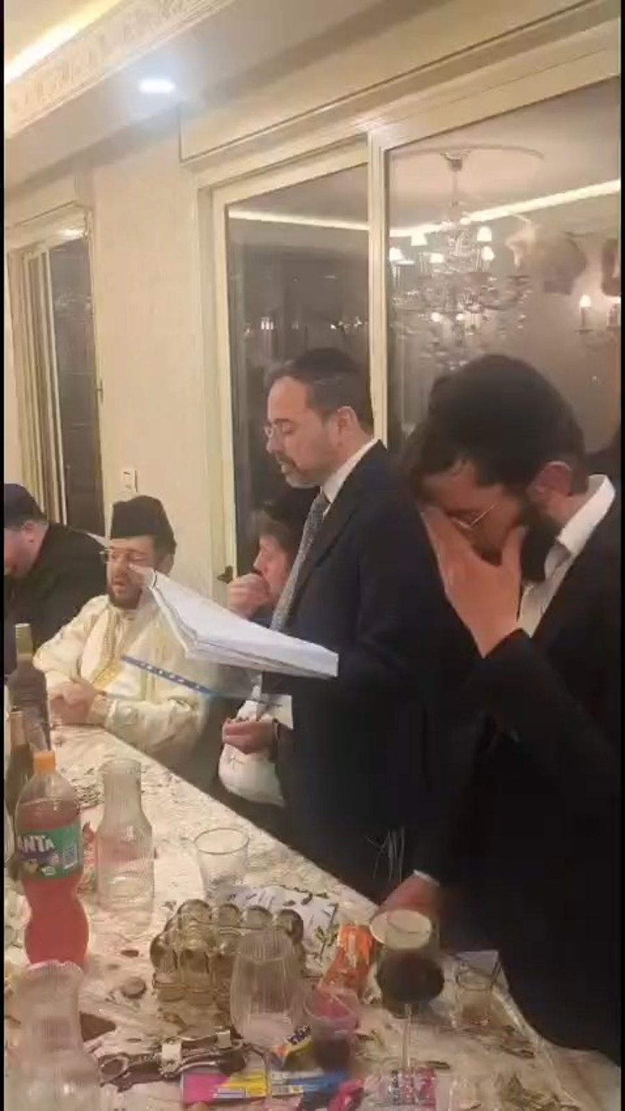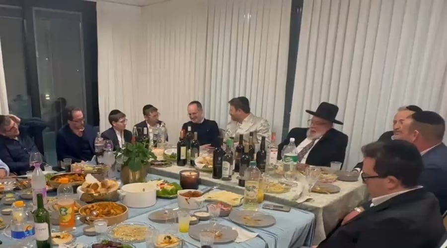 חבר מועצת חכמי התורה הגאון רבי שלמה מחפוד, בשתית 'לחיים' בבית יו"ר ועדת הבריאות ח"כ יוני משריקי לצד אביו הרב יוסף משריקי.