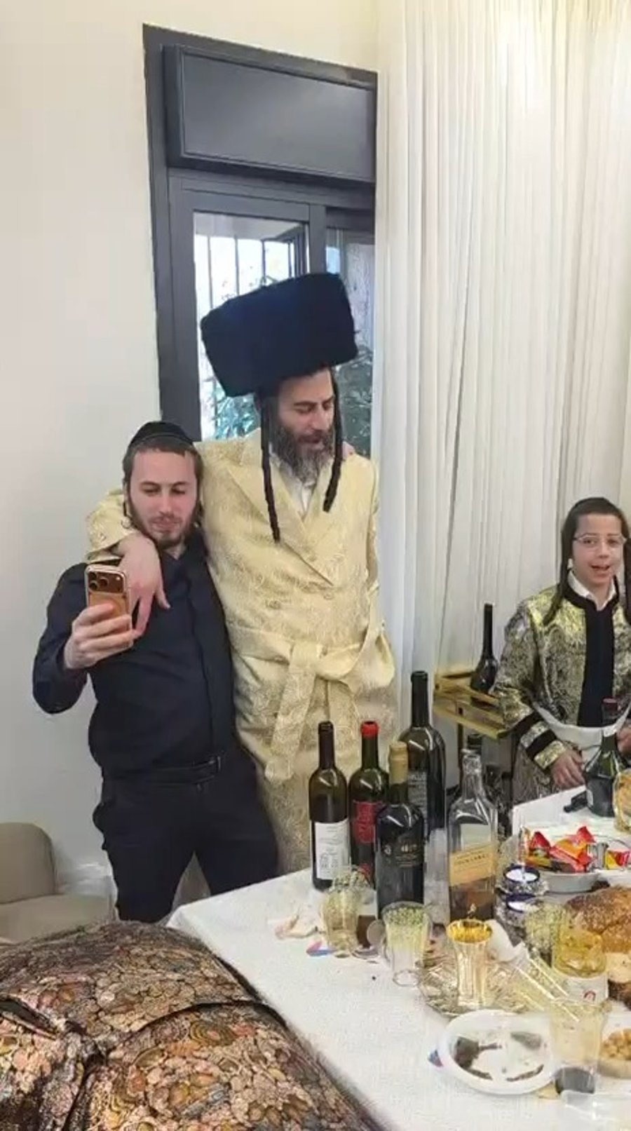 כוכב הרשת שוקי סלומון ומנהלו האישי איש התקשורת איציק אוחנה מ'כיכר השבת', בריקוד במשתה פורים מצומצם שנערך בביתו של ישראל אוזן מנכ"ל משרד הפנים, 'זופניק' מתמוגג מכישורי השירה של רב הסלבס מרדכי חסידים.