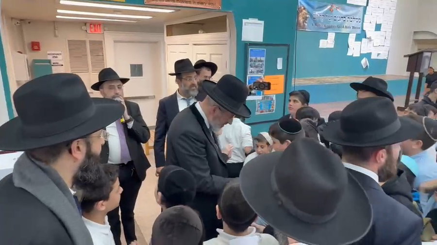 הרב הראשי הגאון הרב דוד לאו שטס למסי חיזוק בארצות הברית, מתקבל באהדה על ידי תלמידים בתלמוד תורה 'שערי ציון' בקווינס.