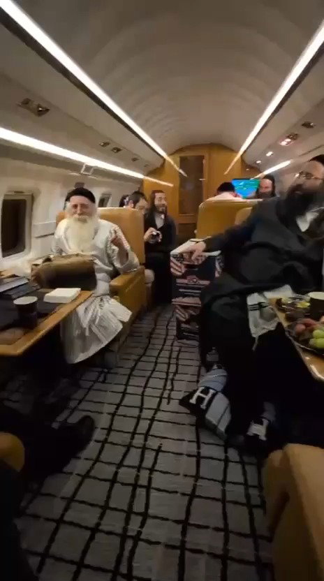 האדמו"ר מתורת חכם במטוס הפרטי בדרך חזור ממסע בזק בפולין.