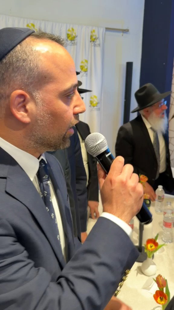 רפאל זביחי מנכ"ל מוסדות 'תפארת רפאל', מנחה את כנס החיזוק של הראשון לציון הגאון רבי יצחק יוסף בעיר בוורלי הילס שבקליפורניה.