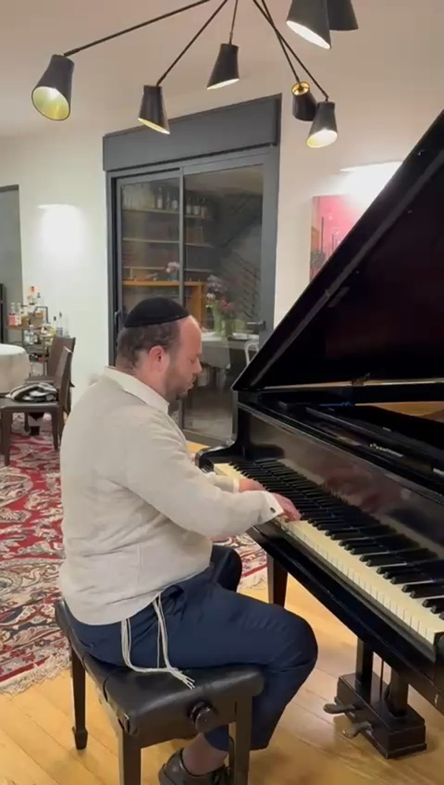 את איצלה כץ, מגיש 'מעייריב', תפסנו בצאת השבת מתפייט על הפסנתר כבקי ורגיל, בסלון הוילה בה התארח בשכונת בית וגן הירושלמית.