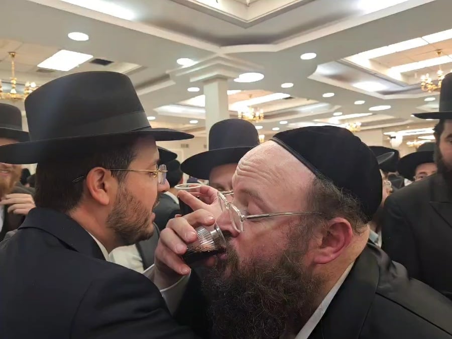 שלמה אלחרר סגן ראש עיריית בני ברק ב'לחיים' עם ישראל דרנגר רמ"ט ראש העיר העיר חנוך זייברט - שחיתן את את בתו.