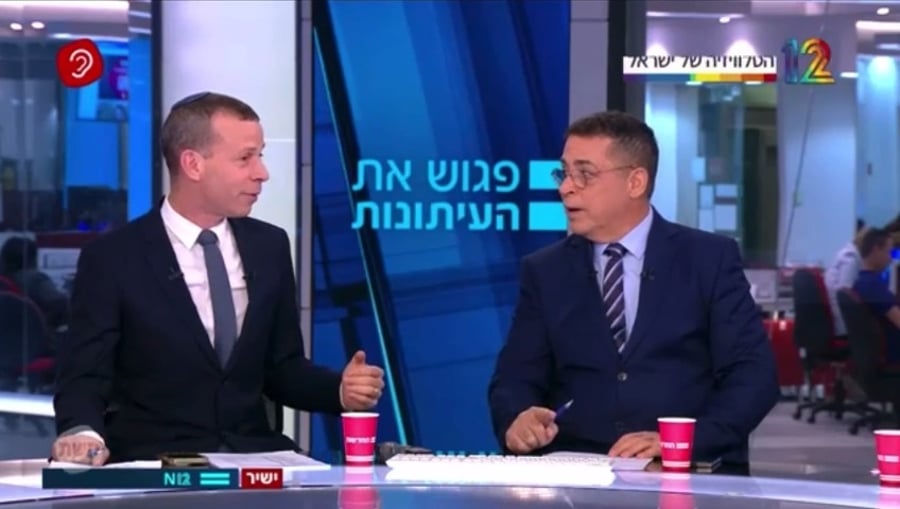 אריאל אטיאס, השר לענייני חוק הגיוס, נתפס בשיחת תדרוך, ברחוב ירושלמי צדדי, עם פרשן 'כיכר' ישי כהן.