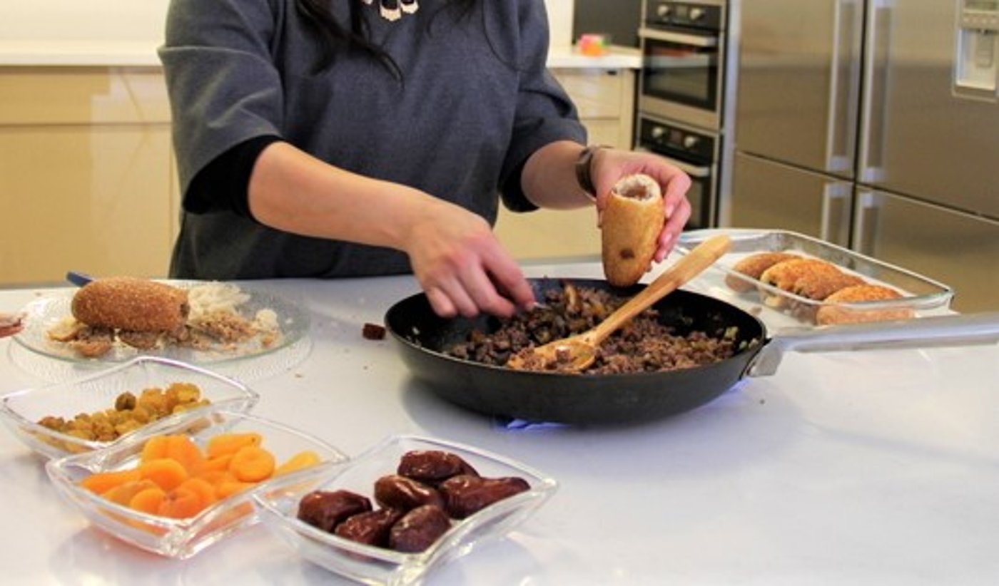 2. מתבלים במלח, פלפל שחור וקמצוץ קינמון, מוסיפים את הפירות היבשים, מערבבים היטב, מסירים מהאש ומניחים בצד לצינון.